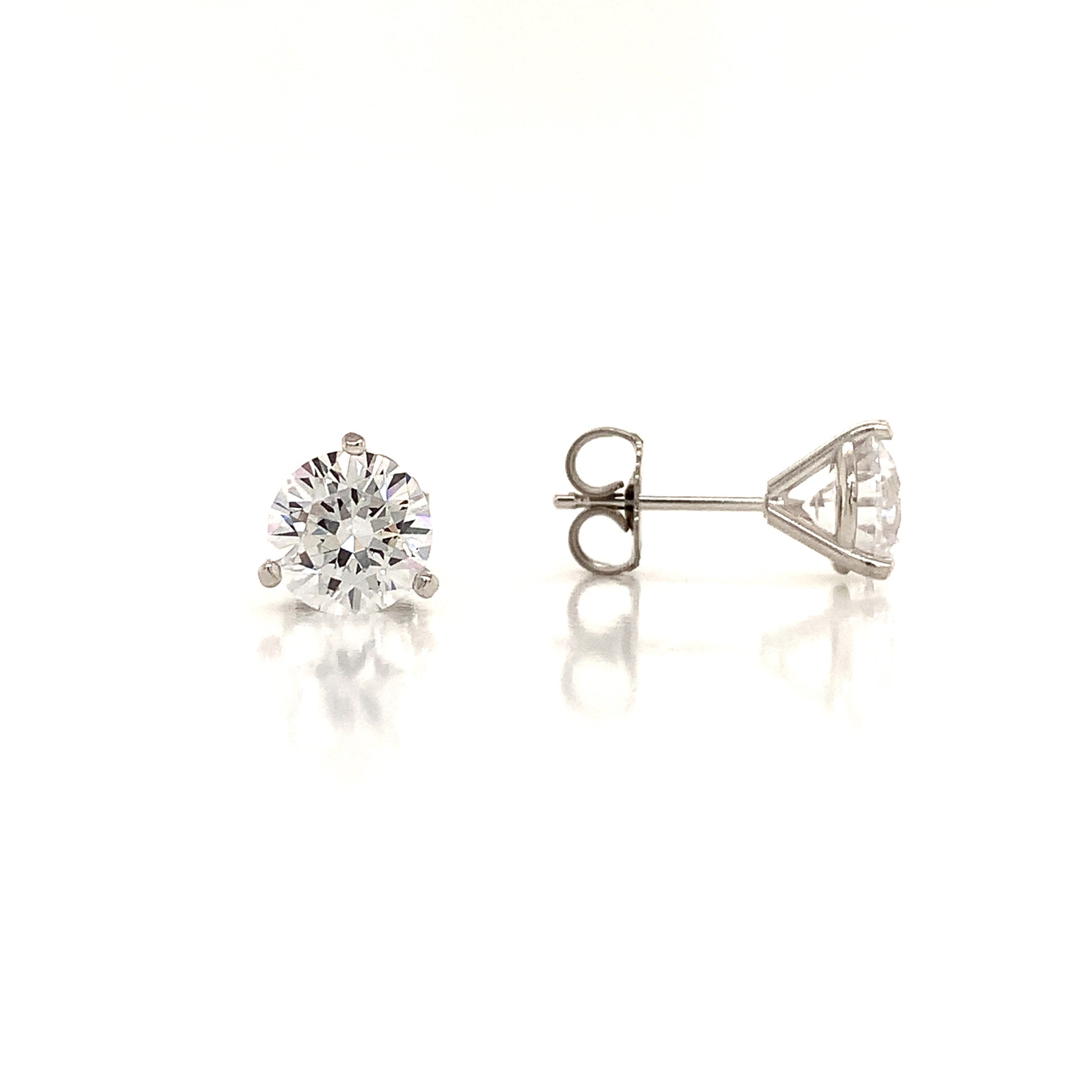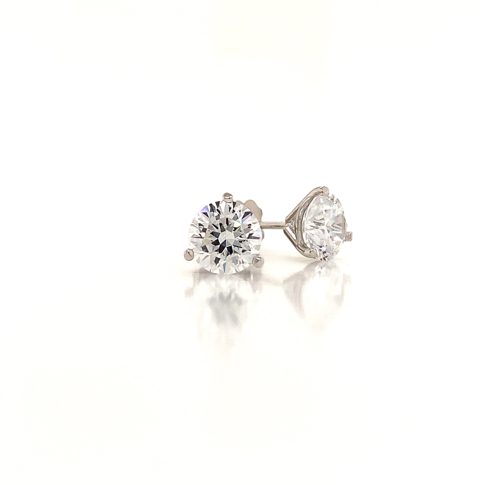 14K Colorless Simulated Diamond 3 Prong Martini Stud Earrings Lannyte